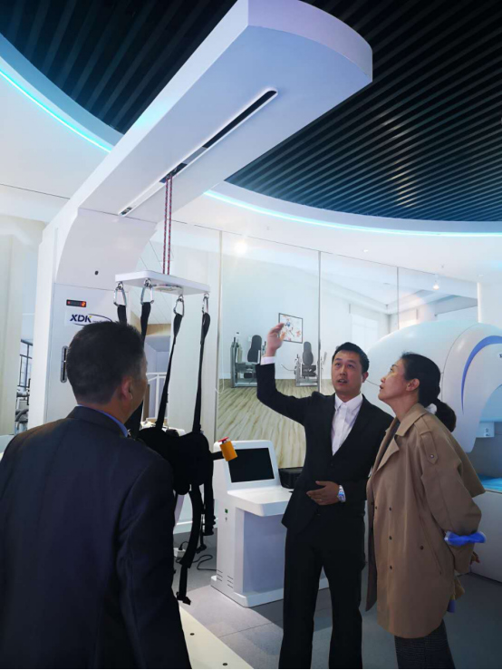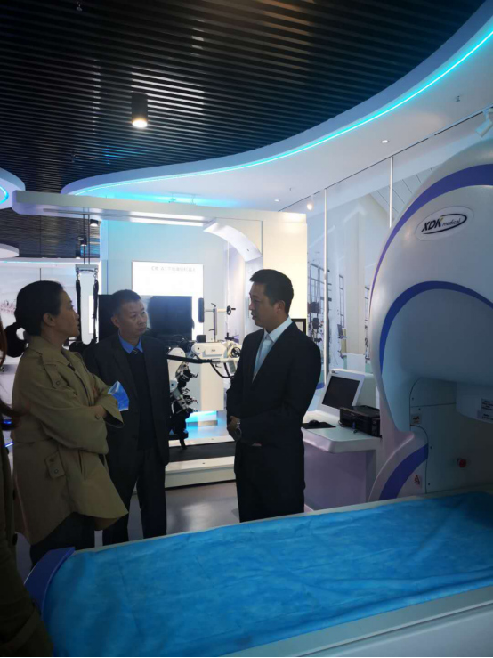 Director Li Shu asked in detail about the cooperation mode and application details of intelligent upper limb rehabilitation robots, gyromagnetic treatment devices and other products, and introduced the current development status of Kaifeng Central Hospital and the next plan.