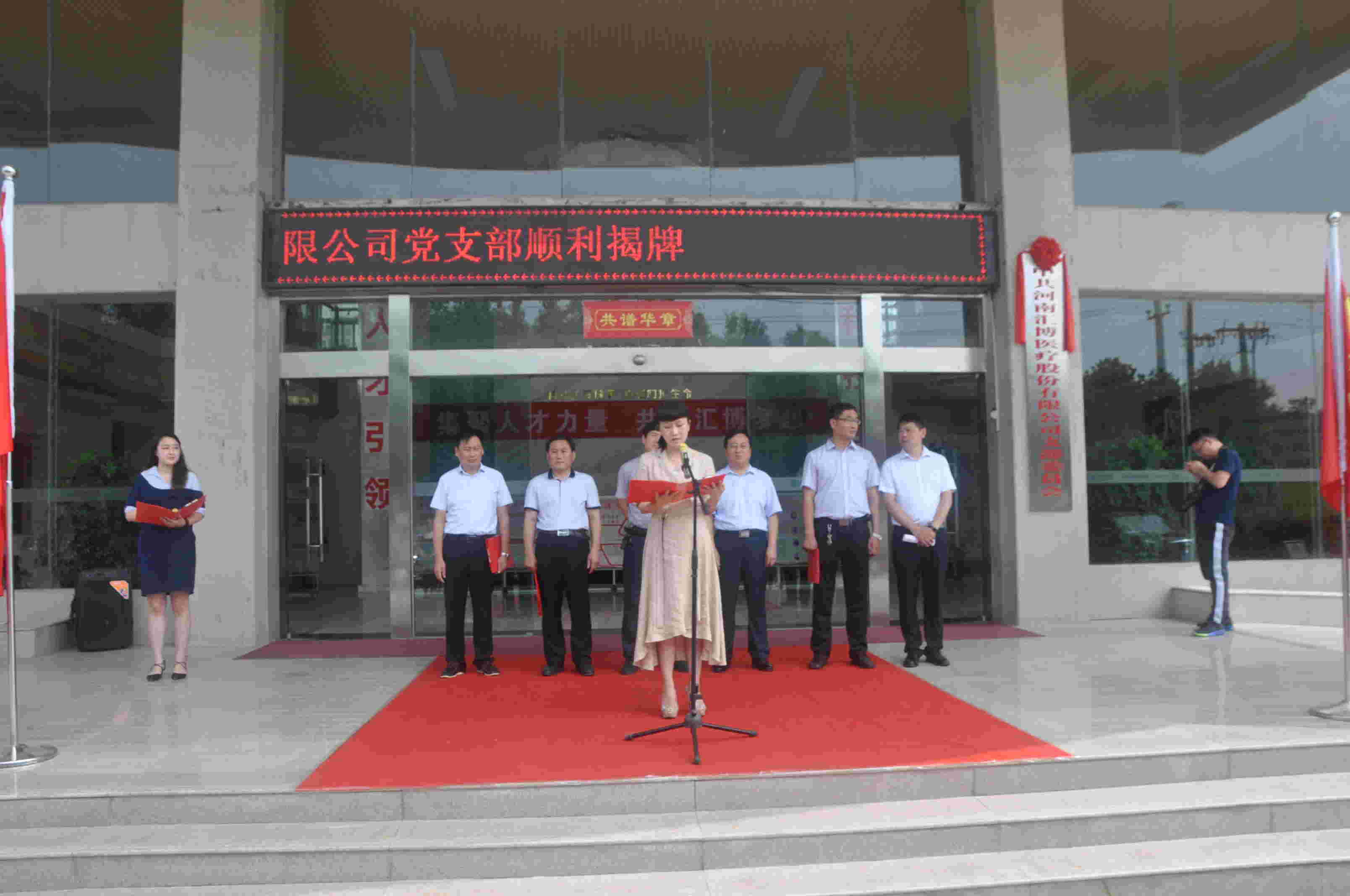 溧河乡人大张金一主席宣读了《中共宛城区溧河乡委员会关于成立河南汇博医疗股份有限公司党支部的批复》。