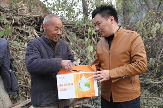 河南汇博医疗股份有限公司将企业文化与脱贫攻坚更好的结合起来,结合脱贫攻坚工作要求,心系郭厂贫困村脱贫工作。为该村贫困户提供就业岗位,提供帮扶资金,并建设扶贫工厂。图为12月4日,河南汇博医疗公司负责人朱天钢到宛城区高庙乡郭厂村慰问贫困户。