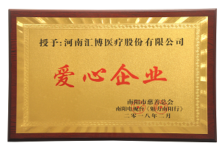 2018.2南阳市慈善总会授予汇博医疗“爱心企业”荣誉称号