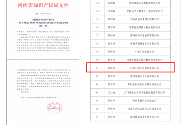 2020.10.08荣获“2020年河南省知识产权优势企业”