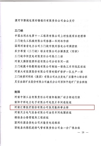 近日,河南汇博医疗股份有限公司医用敷料事业部荣获河南省“安康杯”竞赛组委会办公室授予的河南省“安全示范班组”称号。